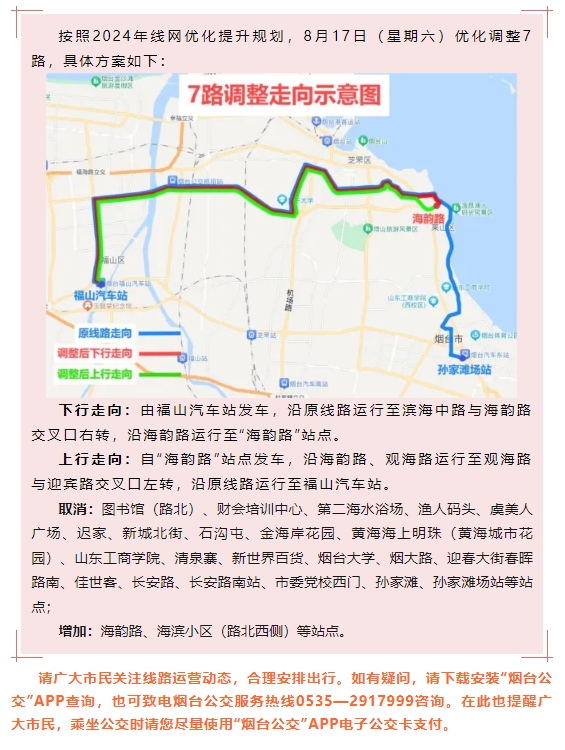 【通告】8月17日優化調整7路